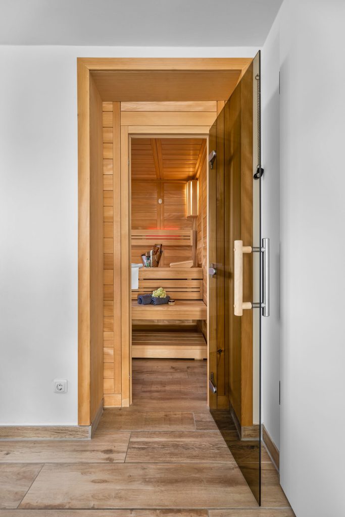 Die Ostsee-Ferienwohnung "Sea 65" beherbergt zwei stilvolle Schlafzimmer, wobei ein optionales drittes Zimmer unter "Sea 65 Plus" hinzugebucht werden kann, perfekt für größere Familien oder Gruppen bis zu 6 Personen. Jedes Schlafzimmer verfügt über ein eigenes Badezimmer, einschließlich einer frei stehenden Whirlwanne mit einzigartigem Wasserblick im Obergeschoss. Die finnische Sauna lädt zum Entspannen ein.
