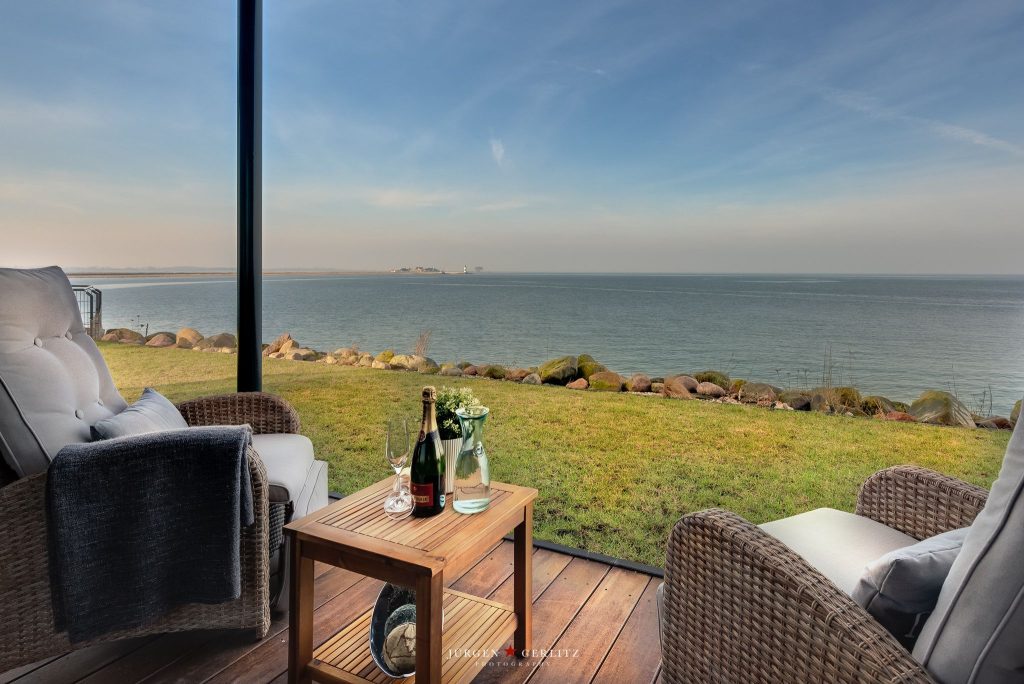 Das Bad mit finnischer Sauna lädt ein, den Blick auf die Ostsee zu genießen. Ein separates Gäste-WC sorgt für Komfort und Privatsphäre. Die moderne offene Küche mit Kochinsel hat alles, um leckere Gerichte zuzubereiten. Das Wohn-Esszimmer bietet immer einen Blick auf vorbeifahrende Segelboote. Das großzügige, offene Wohnkonzept ermöglicht viele gemeinsame Stunden-ohne Abstriche – die Ostsee natürlich immer im Blick.