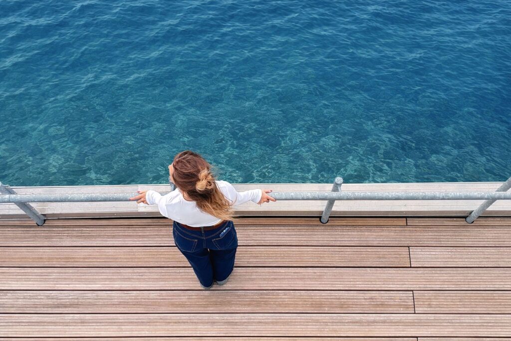 Der helle und freundliche Wohn- und Es...Weiterlesensbereich verfügt über bodentiefe Fensterfronten mit wunderbarem Blick auf die Terrasse und den davorliegenden Yachthafen. Die nach Süden ausgerichtete Terrasse ist direkt von dem Wohnbereich zugänglich und lädt ganztags zum Entspannen im eigenen Strandkorb oder einem gemütlichen Essen beim Sonnenuntergang ein.