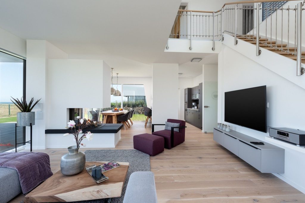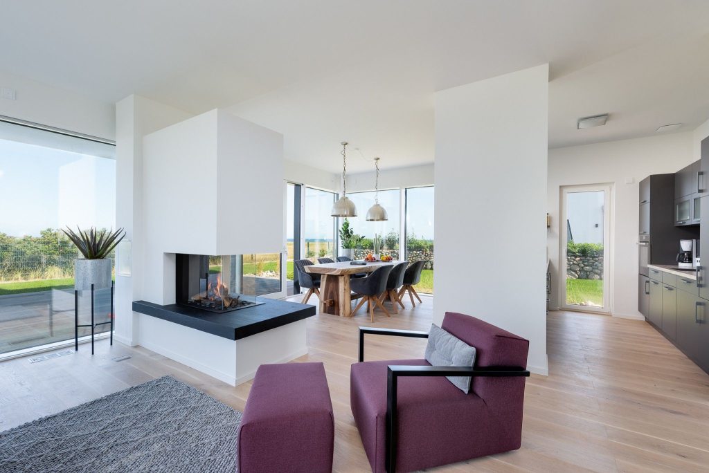 Die Ostseevilla ist mit Fußbodenheizung, Lüftungsanlage und elektrischen Außenjalousien ausgestattet. Zwei Carports, inklusive Elektroladestation, sowie ein abschließbarer Raum für Fahrräder stehen Ihnen zur Verfügung.