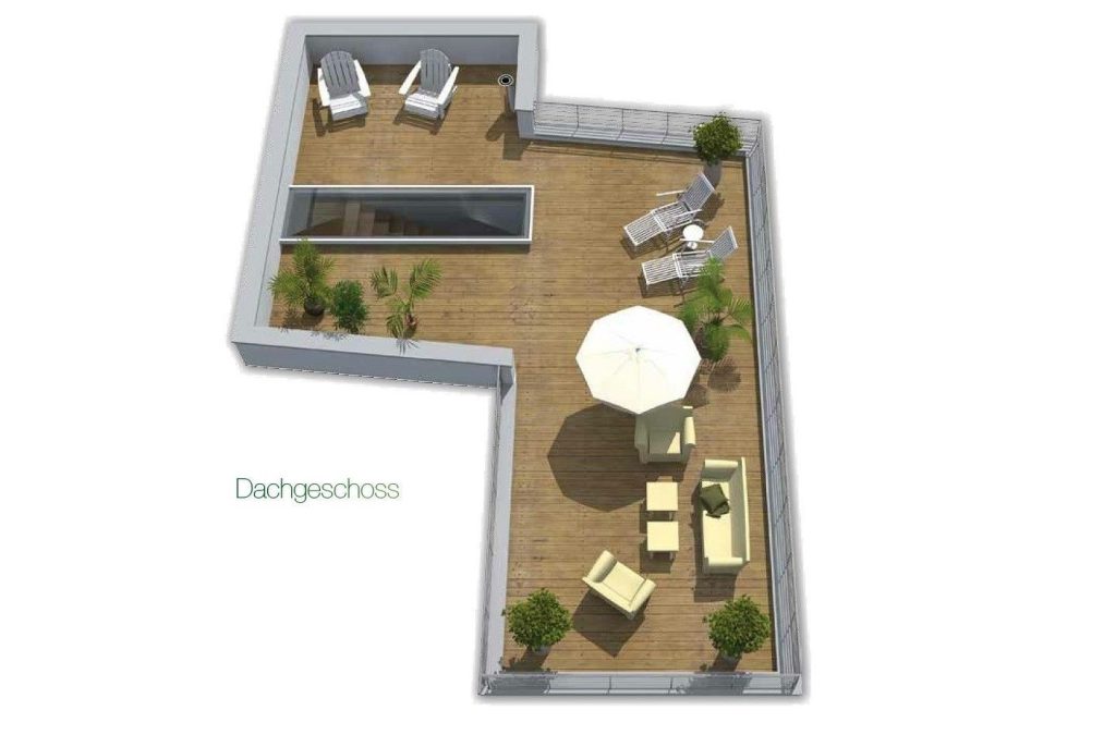 Dachterrasse: Von der oberen Etage geht es hinauf zur weitläufigen Dachterrasse. Genießen Sie im Strandkorb den unvergleichlichen Rundumblick auf Ostsee, Schlei und den Hafen des Ostseeresort Olpenitz – das Highlight für Ihren Ostseeurlaub.