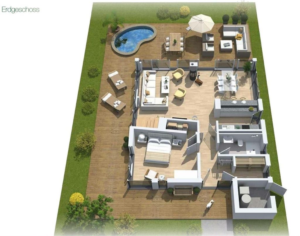 Erdgeschoss: Schon beim Betreten begrüßt...Weiterlesen Sie ein Eingangsbereich mit praktischem Abstellraum inkl. Waschmaschine und Trockner. Ein modernes Badezimmer, ein Schlafzimmer mit Boxspringbett sowie der 43 qm große offene Wohn-Essbereich mit Gas-Kaminofen und einer top-ausgestatteten offenen Küche bieten Komfort pur.