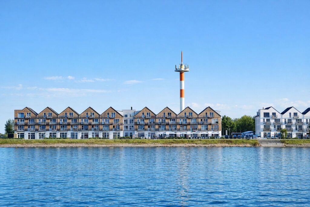 Die Hafenpromenade bildet das Herz des Ostseeresort Olpenitz. Hier finden Sie alles, was Sie für einen entspannten Urlaub brauchen: einen Edekamarkt, einen Bäcker, den beliebten Eisladen Giovanni L, das italienische Restaurant Ciao Bella sowie Möglichkeiten Andenken zu erwerben. Hoch über den Läden liegen die Ferienwohnungen, die mit einem traumhaften Ausblick über das gesamte Ostseeresort Olpenitz überzeugen – ideal für alle, die Komfort und unmittelbare Nähe zu den wichtigsten Annehmlichkeiten schätzen.